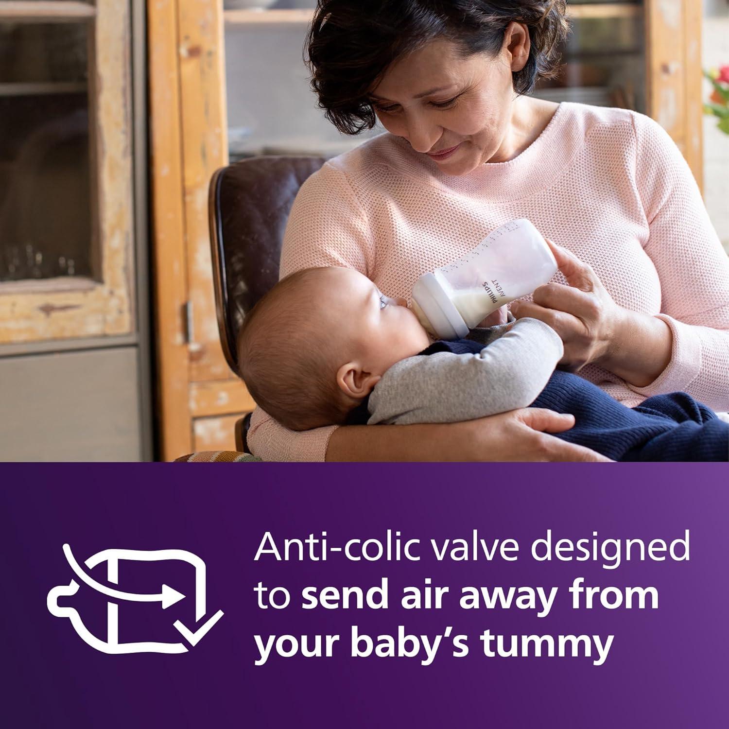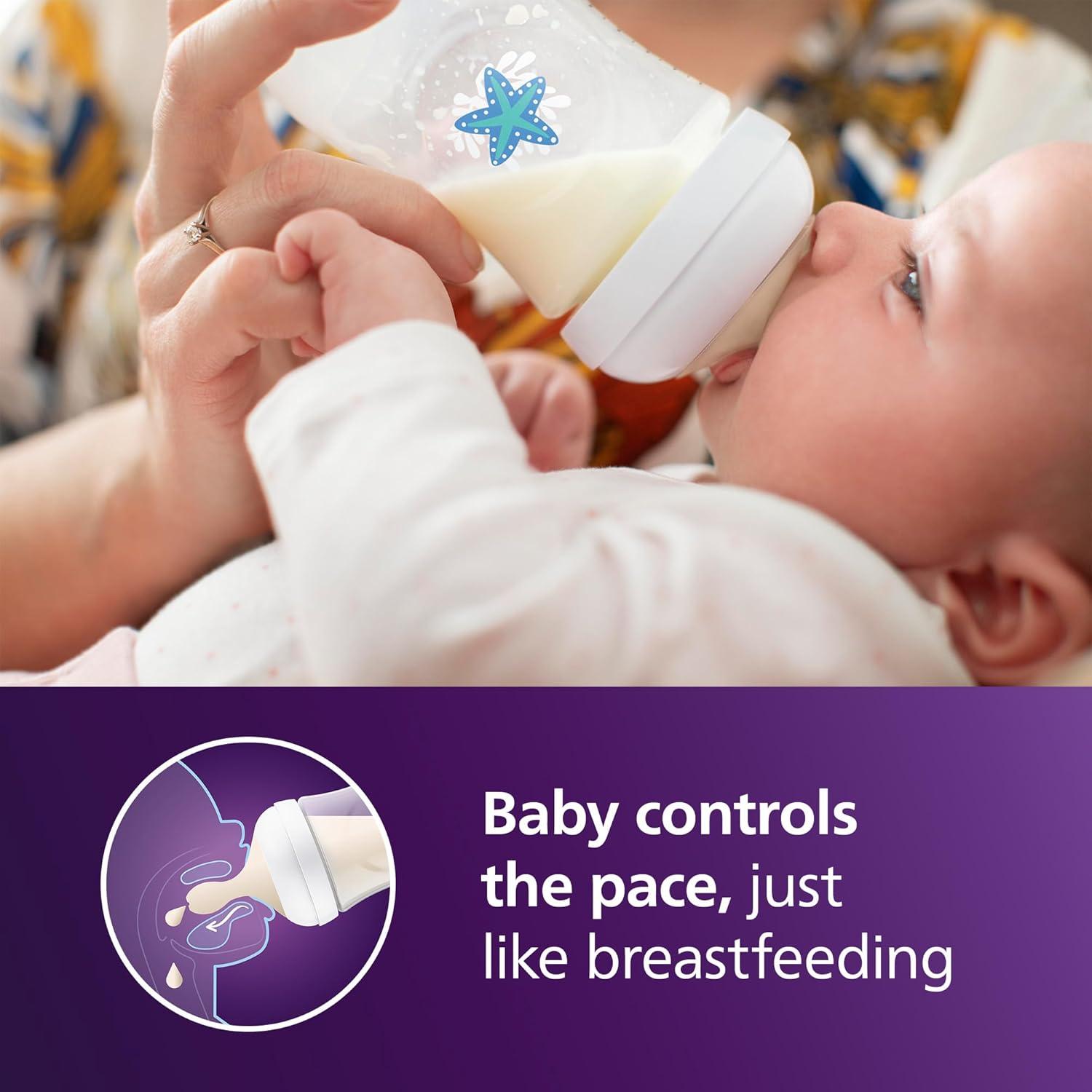 A newborn starter set with color, for new parents. Philips Avent Blue Natural bottles with Natural Response nipple lets baby control the pace of the milk, like they do when breastfeeding.