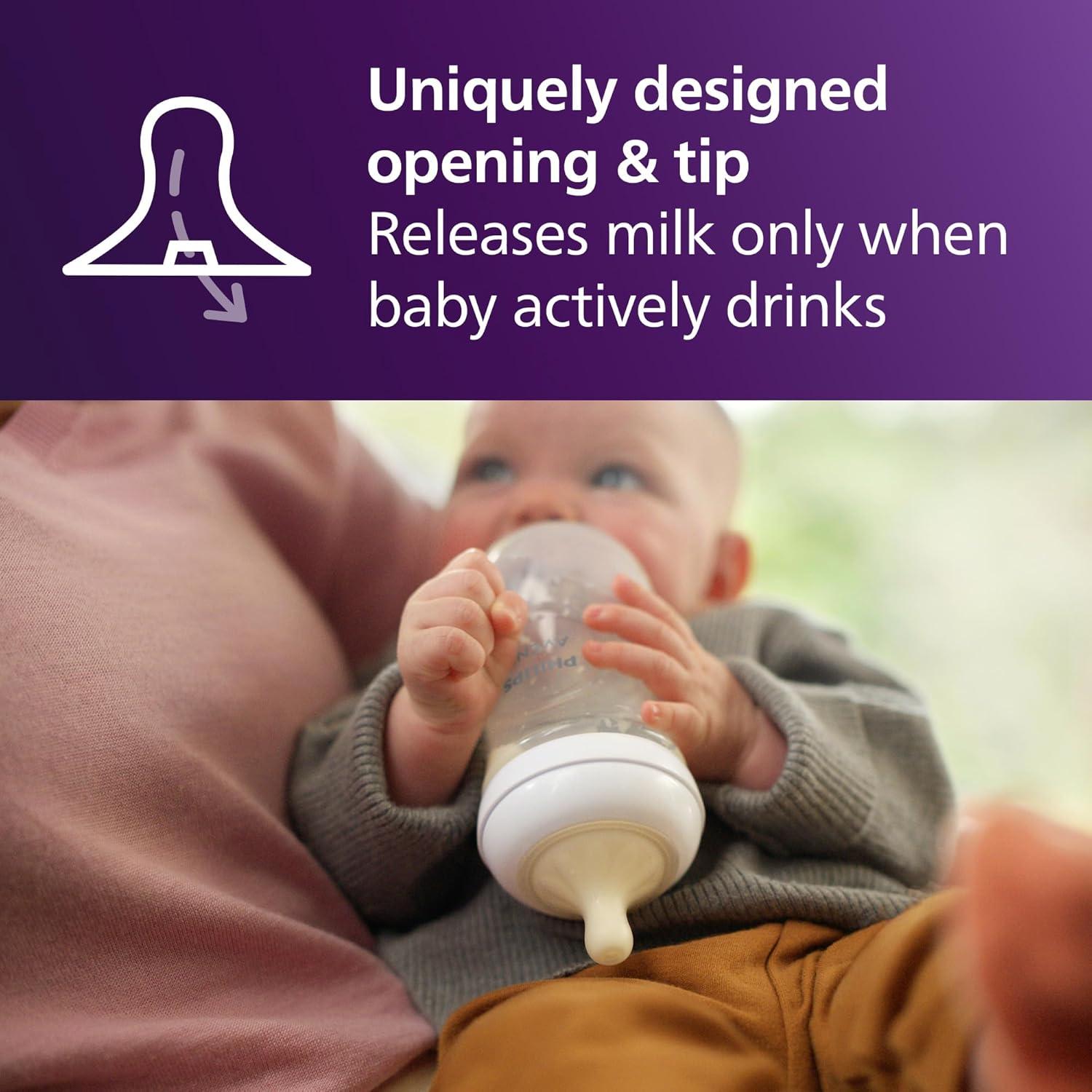 Soft, flexible, breast-shaped nipple makes combining breast and bottle feeding easy